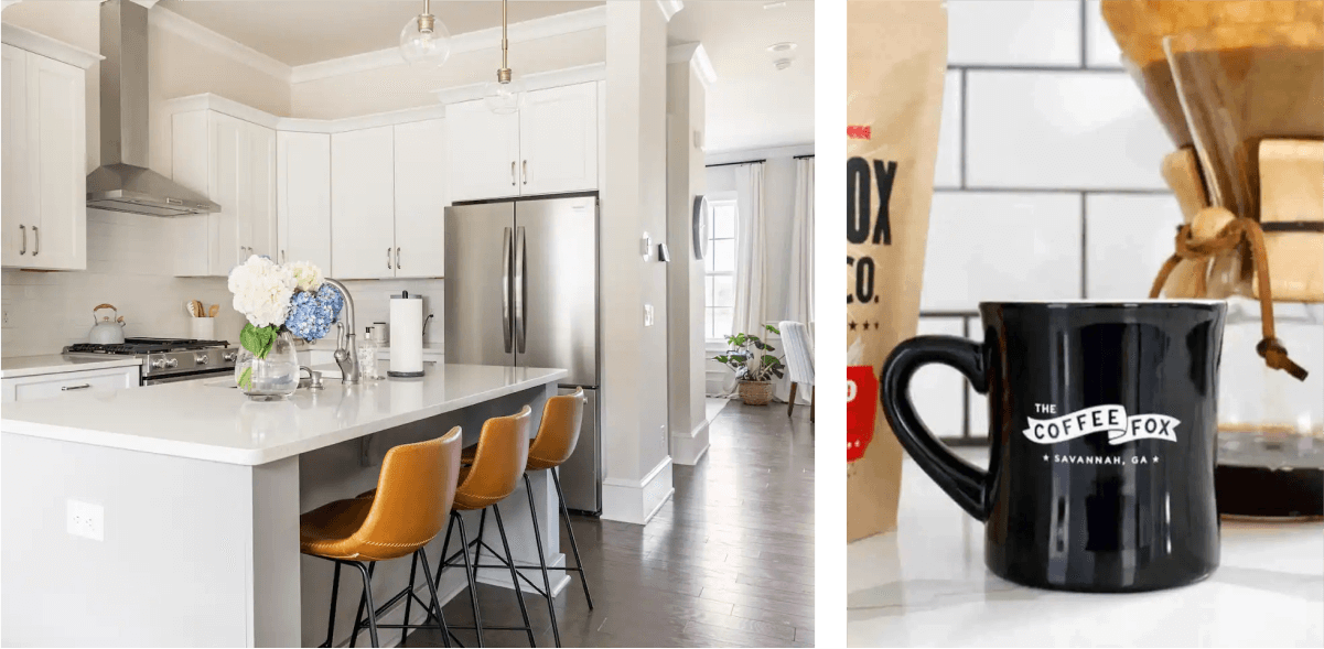 A: Our Chemex Ottomatic Pour-Over Coffee Maker, purchased through Crate and Barrel via Minoan, has been a big hit! We plan on utilizing Beekman 1802 toiletries for our next property. They’re cruelty-free, and recyclable materials appeal to us and support our philosophy.