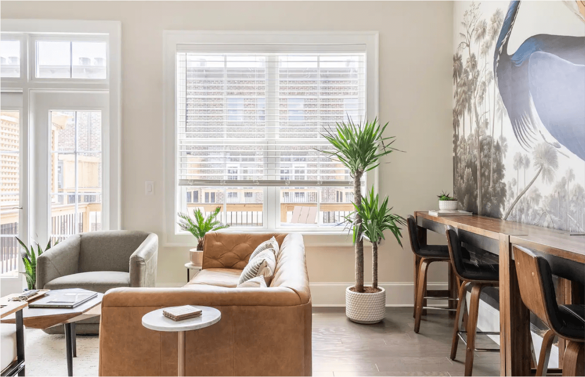 A: Our brand, Ramble Travel Company, emphasizes unique and well-designed stays with subtle references to the local area. For example, Indigo House is a nod to the history of the Georgia and South Carolina Low Country indigo industry, so to incorporate the history, we included feature walls depicting plant and animal scenes indicative of the area.